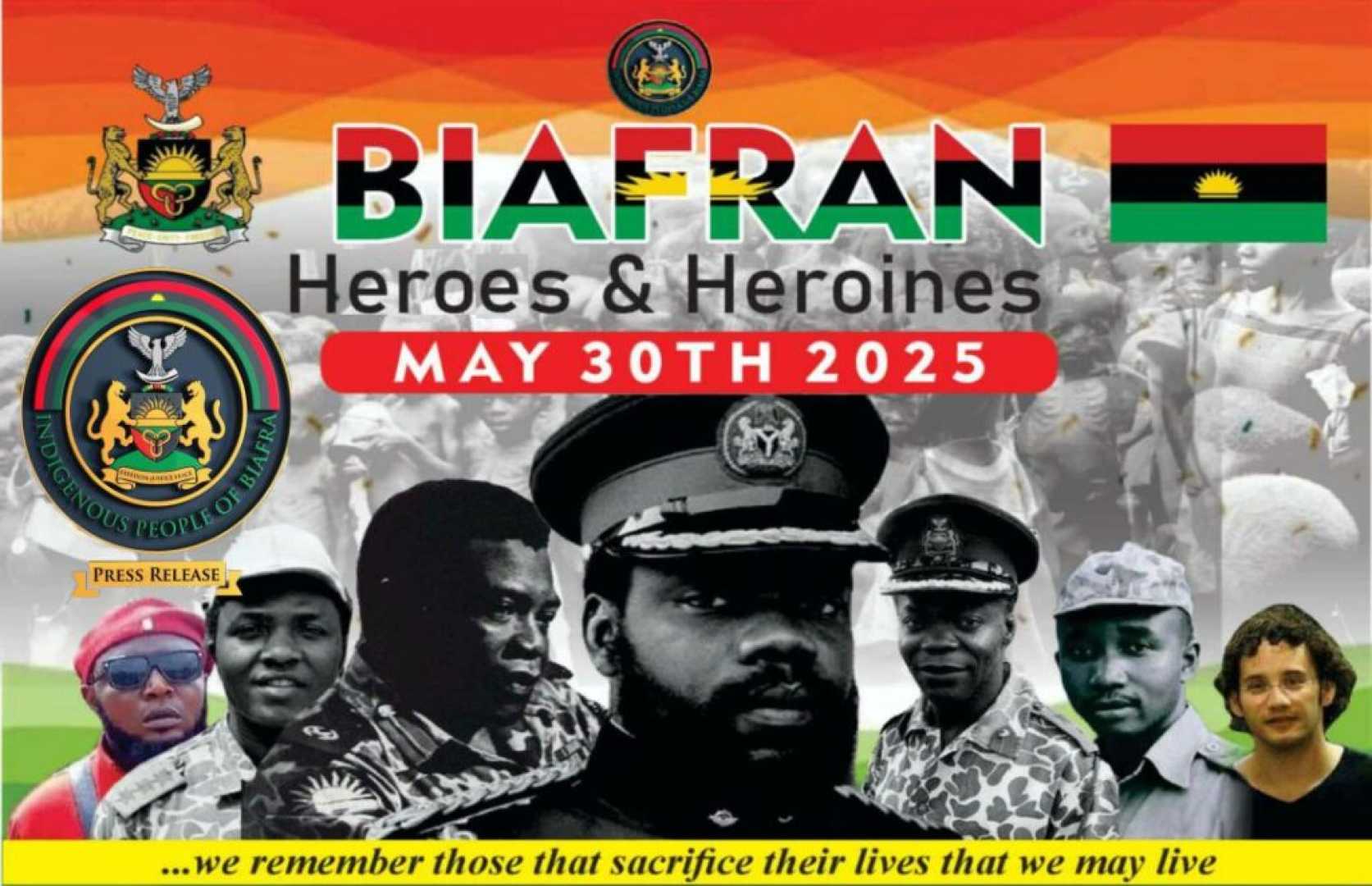 According to him, dis May 30 observance go mean say schools, markets, churches, mosques, and all public gatherings go cease operation. He stress say dis day na for families to reflect on the events and losses during the Biafran War. ‘Dis holiday na annual memorial day and the observance gats be total to pay tribute to our heroes and heroines,’ Powerful declare.