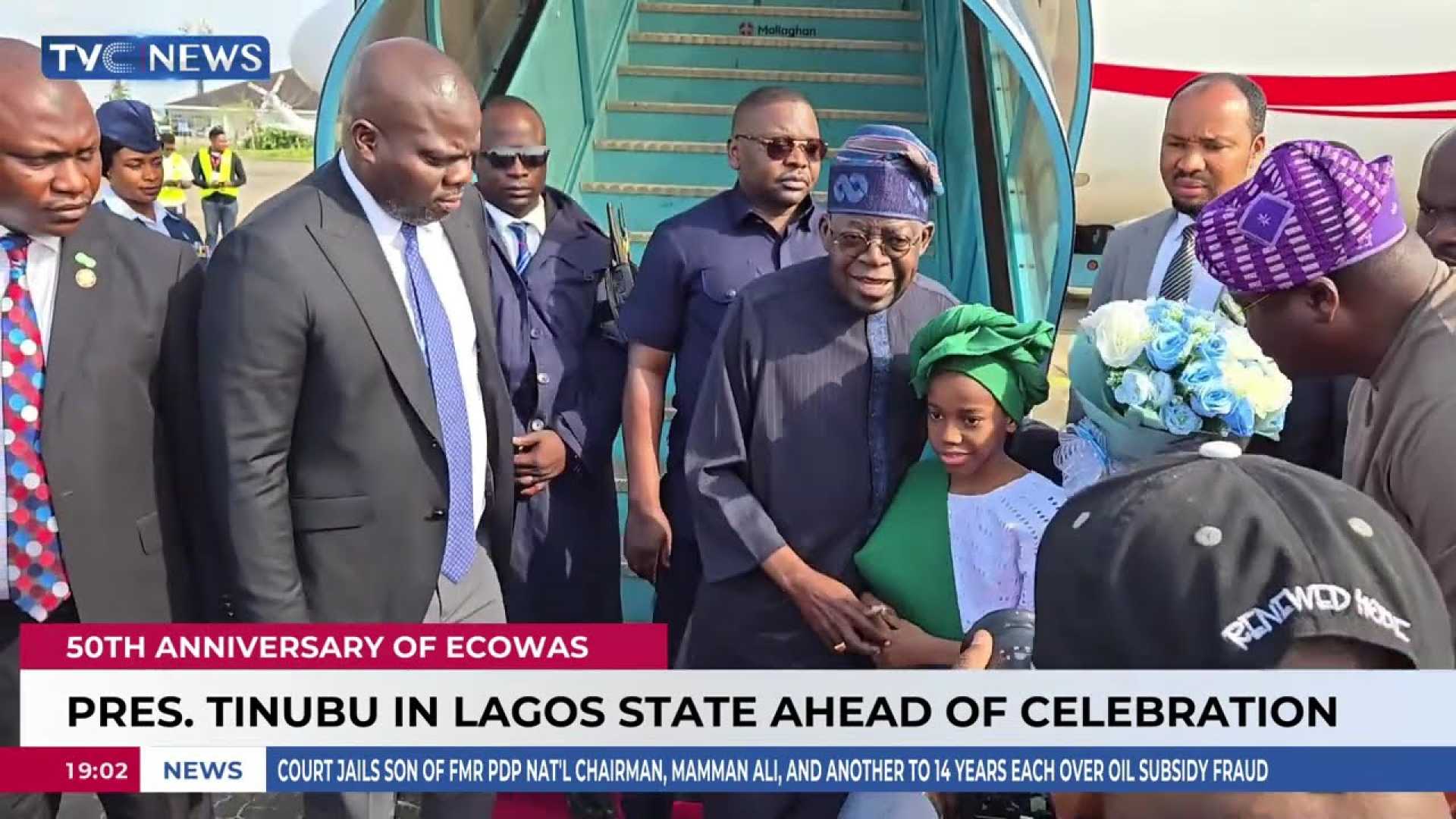 Tinubu Don Land Lagos For ECOWAS 50th Anniversary Celebration