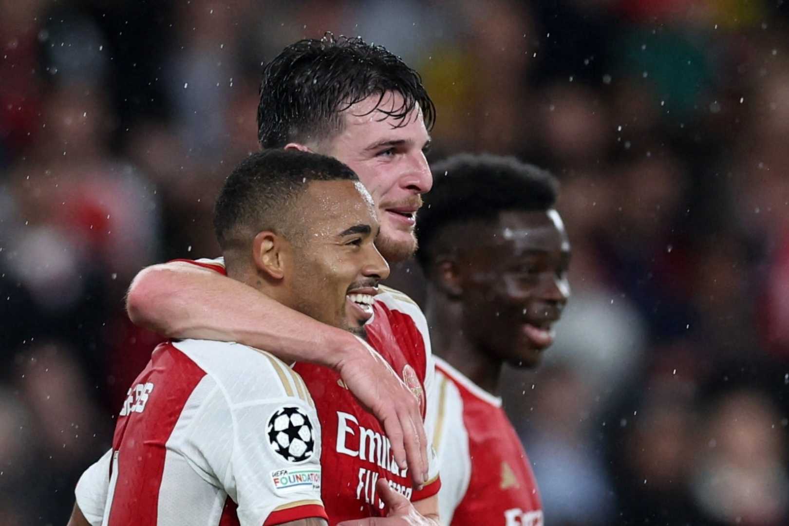Na Declan Rice, wey just return from injury, na him carry Gunners on him shoulder with two goals wey dem call brace. E carry Arsenal six points clear for table, make dem dey shine like diamond.