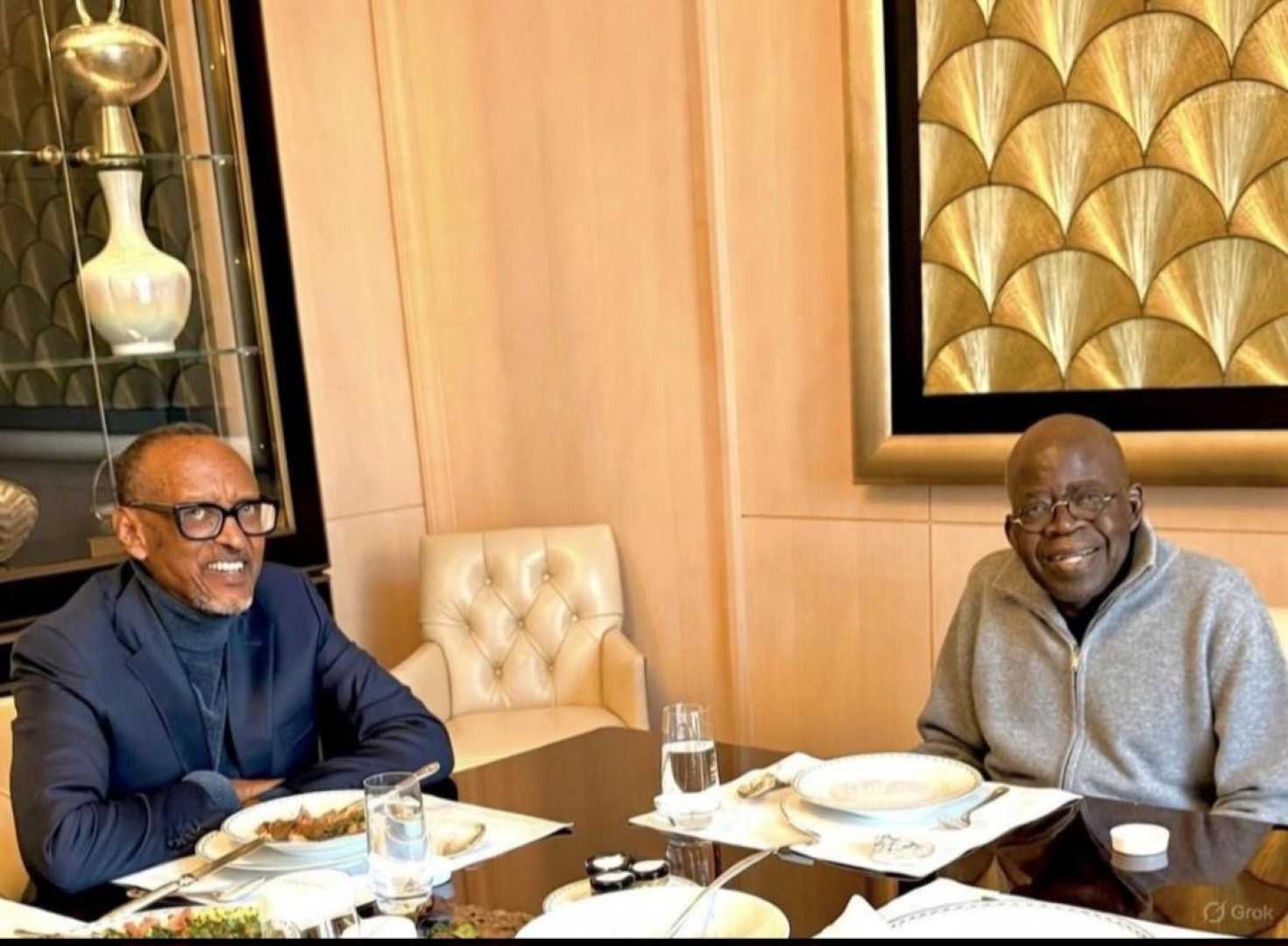 Abeg, make we yan about dis latest wahala wey don show for social media. E be like say our own President Tinubu don land for hot soup, as one photo wey show am with Rwandan President Paul Kagame don turn battleground for online debate. Na wetin happen? Na di Grok watermark wey carry di matter go front!