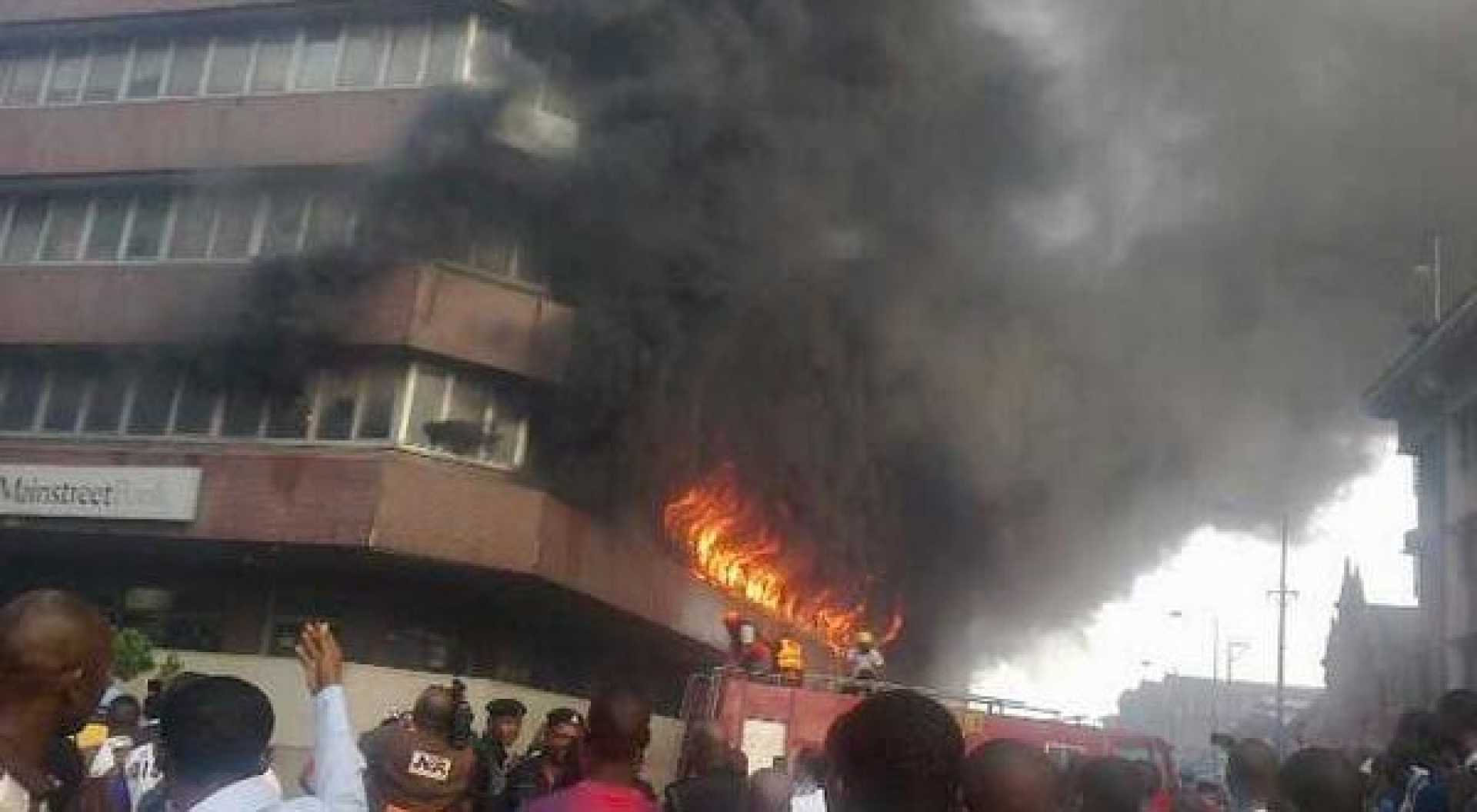 Di fire begin small, just as smoke, but before you know, di fire don dey burn hot and di whole plaza don dey in danger. Collins wey dey try carry goods comot hear say di fire don dey come up, but e try rescue him brothers wey dey upstairs.