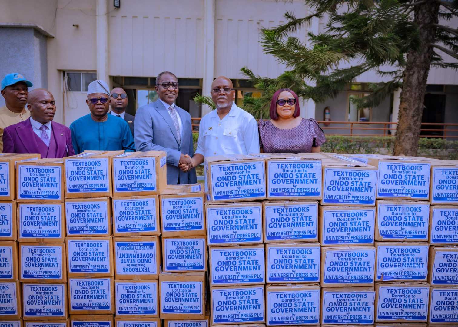 My people, hear this wahala wey just drop for Ondo State! University Press PLC don land over 3,000 books for the state government. Na them Managing Director, Mr. Samuel Kolawole, carry the books come meet Governor Lucky Aiyedatiwa for Akure. E no be small thing oh!