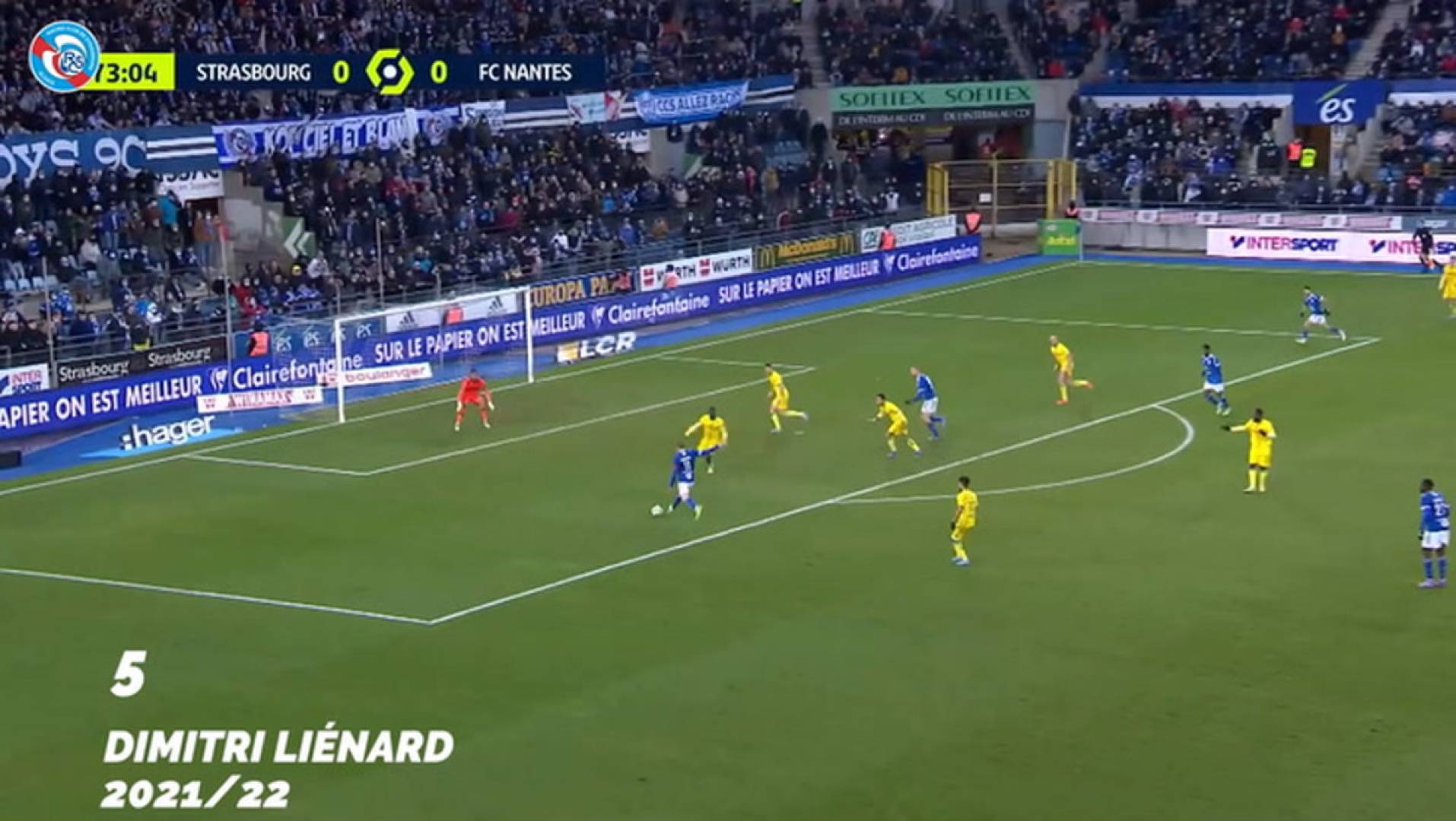 Before Strasbourg fit catch their breath, Mousa Al-Tamari add third goal two minutes later at 52nd minute. Ludovic Blas provide assist from left side, and the Jordanian international finish with curled shot wey beat Penders again. The defense of Strasbourg look completely lost.